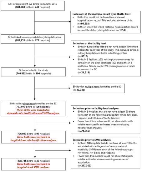 - Howland, R.E.; Tsao, T.Y. Evaluating Race and Ethnicity Reported in Hospital Discharge Data and Its Impact on the Assessment of Health Disparities. Med. Care 2020, 58, 280–284. [Google Scholar] [CrossRef]