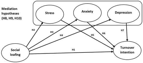 2.4. The Mediating Role of Employees’ Mental Health in the Relationship between Social Loafing and Turnover Intention