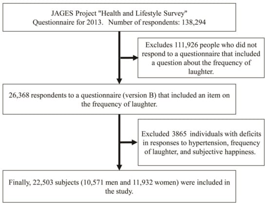 APA StyleHayashi, F., Shirai, Y., Ohira, T., Shirai, K., Kondo, N., & Kondo, K. (2023). Subjective Happiness, Frequency of Laughter, and Hypertension: A Cross-Sectional Study Based on the Japan Gerontological Evaluation Study (JAGES). International Journal of Environmental Research and Public Health, 20(9), 5713. https://doi.org/10.3390/ijerph20095713