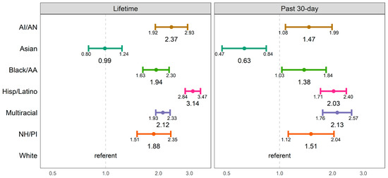 Odds ratios for lifetime and past 30-day e-cigarette use by race/ethnicity.