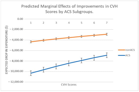 Showing predicted drop in expenditures based on CVH scores by ACS.