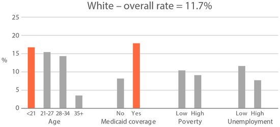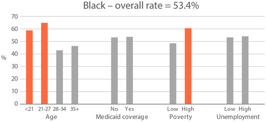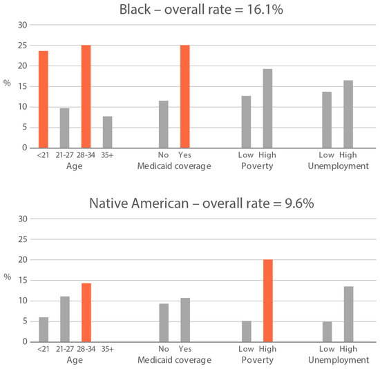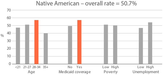 | Medicaid insurance coverage (%) 1 | 34.8 | 43.5 | 16.0 | 20.6 | 16.5 | 19.3 |
