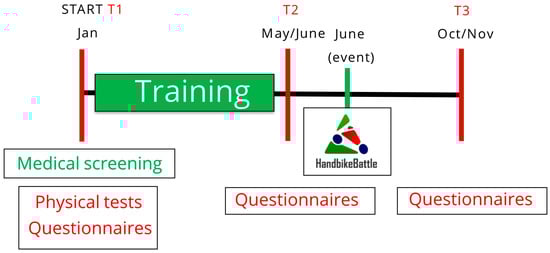- Kouwijzer, I.; de Groot, S.; van Leeuwen, C.M.C.; Valent, L.J.M.; van Koppenhagen, C.F.; HandbikeBattle group; van der Woude, L.H.V.; Post, M.W.M. Changes in Quality of Life During Training for the HandbikeBattle and Associations With Cardiorespiratory Fitness. Arch. Phys. Med. Rehabil. 2020, 101, 1017–1024. [Google Scholar] [CrossRef]