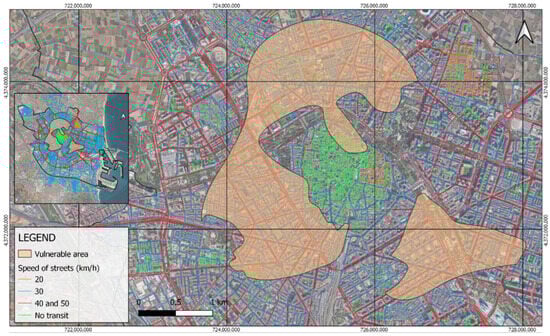 In the specific case of Valencia, the application of this methodology has provided further illuminating insights. It has been observed that the areas with the highest equity, both in terms of the amounts of nitrogen dioxide and the presence of NO2-vulnerable people, coincide mostly with areas of the city that lack vehicular traffic or are predominantly pedestrianized (streets in green in Figure 9). This correlation suggests that urban policies promoting sustainable mobility and traffic reduction not only contribute to improved air quality but also create safer and healthier environments for vulnerable groups. This demonstrates the potential for urban design to mitigate pollution impacts effectively.
