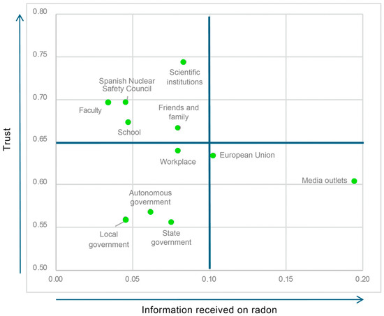 Quadrant graph based on the relationship between information received about radon and trust in the institutions or groups from which it originates. Source: own elaboration.