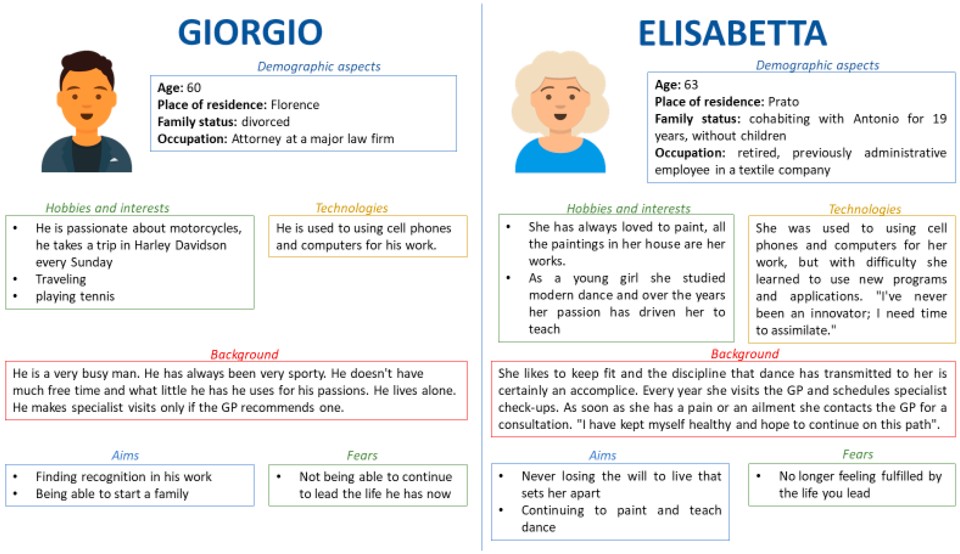 | Persona 1—Giorgio (Main features: prodromal stage, no check-ups) | [N1] Be proactively involved in an early diagnosis process | X | ||||