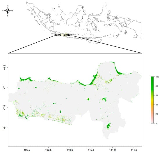 Central Java, Indonesia, is an important case study of how recurrent flooding impacts household-level food security. Due to a confluence of geological, environmental, and economic factors, Central Java faces recurrent fluvial and tidal flooding from tropical storms, intense rainfall, sea level rise, and land subsidence [21,22]. In 2023, Central Java was among the most flood-affected provinces in Indonesia, totaling about 93 events according to the National Disaster Management Agency (BNPB) [23]. Central Java is also predominantly agricultural, producing most of Indonesia’s rice supply [24]. Another important aspect is the proclivity to stay and adapt in response to floods [25,26,27,28]. While this area is highly vulnerable to flood hazards, studies related to food security in this context have mainly focused on crop production [29,30,31,32,33]. The impacts of flooding on household diet and nutrition in this area are not fully understood.
