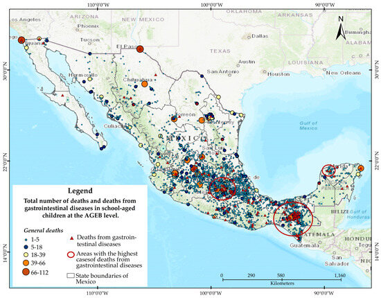 Child mortality from WGD in Mexico (2019). Source: Own elaboration based on Ministry of Health [3] data, with spatial analysis conducted using ArcGIS 10.8.