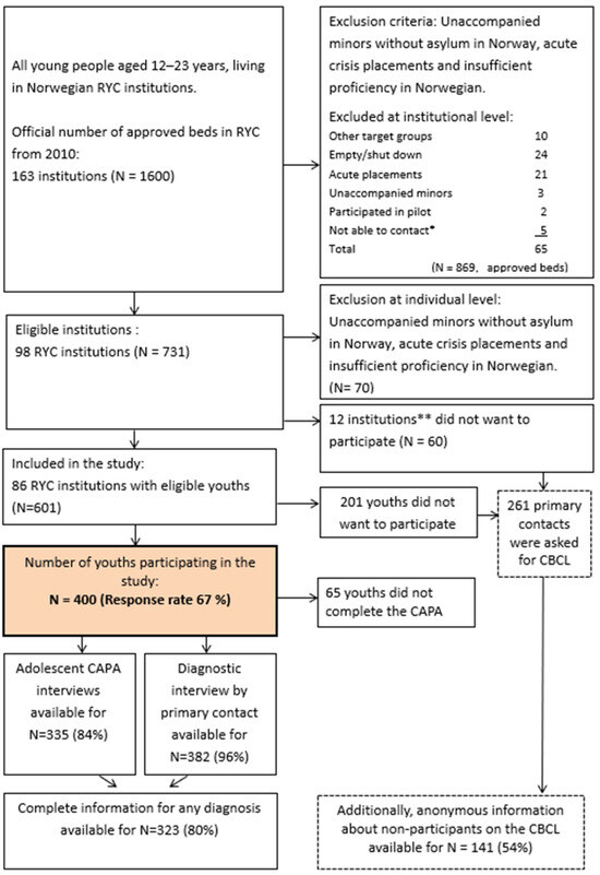 During the period of June 2011–July 2014, adolescents in RYC institutions in Norway were invited to participate, with some exclusion criteria (see Figure 1) [1].