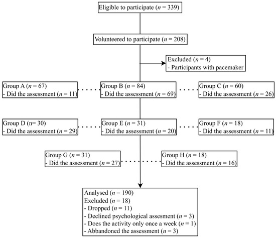 Three hundred and thirty-nine community-dwelling individuals over the age of 60 years from eight municipalities in Bergamo province were eligible to participate in the study. Participants were recruited on a voluntary basis through the Adapted Physical Activity Program (AFA). Individuals using pacemakers were excluded.