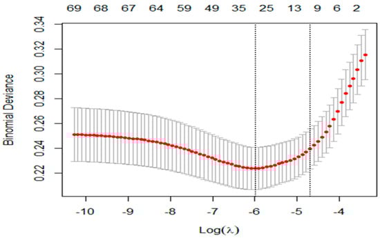 The LASSO software selected 30 variables on optimal parameter ln(λ) = −5.99.