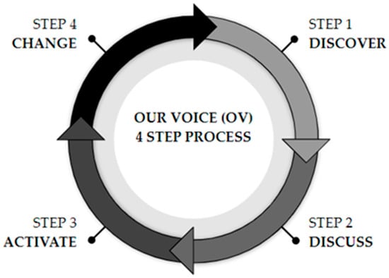 - Pedersen, M.; Wood, G.E.R.; Fernes, P.K.; Goldman Rosas, L.; Banchoff, A.; King, A.C. The “Our Voice” Method: Participatory Action Citizen Science Research to Advance Behavioral Health and Health Equity Outcomes. Int. J. Environ. Res. Public Health 2022, 10, 14773. [Google Scholar] [CrossRef] [PubMed] [PubMed Central]
