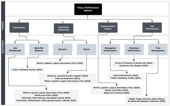 Thematic analysis flow diagram of proxy performance metrics [8,9,10,11,12,13,14,15,16,17,18].