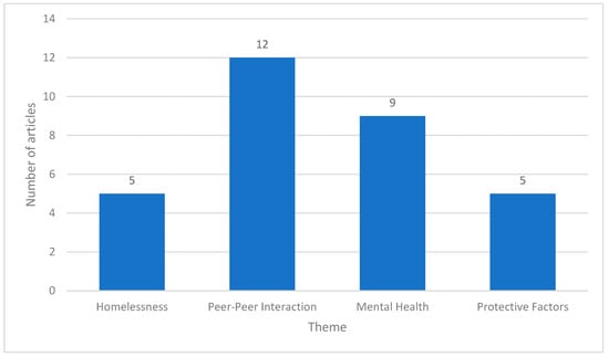 A homeless person is defined as a person who is currently living/sleeping in non-conventional accommodation, including staying on the street or in short-term/emergency accommodation, which can include living with friends/family [49]. Five studies explored the influence of homelessness on drug use among LGBTQ+ adolescents [22,23,28,34,36]. Studies were conducted in the USA, Canada, and New Zealand (NZ). The participant number varied from 77,559 participants to 14 participants. These studies showed that homelessness is a strong determinant of drug use among LGBTQ+ adolescents. One study showed that LGBTQ+ students (14–18 years old) who experienced homelessness were 196% more likely to use alcohol and 275% more likely to use hard drugs than their counterparts [22].Another article showed that adolescents with a history of foster care are more likely to use alcohol or illicit drugs, especially during sexual intercourse [34]. This study also showed that drug use/abuse was both a consequence of and a reason for homelessness [34]. Also, a study by Noble et al. explored the impacts of COVID-19 on adolescents experiencing homelessness [36]. The study showed that feelings of isolation/loneliness increased mental health instabilities and drug use among LGBTQ+ adolescents [36].