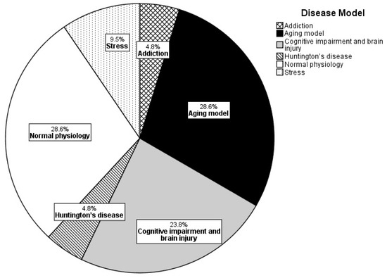 The high representation of aging and normal physiology models in REE studies suggests a strong interest among researchers in examining how daily short-term environmental stimulation impacts aging and overall health. This focus aligns with previous findings showing that environments deficient in stimuli can accelerate age-related cognitive decline and adversely affect physiological functions [56]. Moreover, interest in using REE in these models may also stem from the potential of adult neurogenesis to reveal the underlying neurobiology of this cognitive decline. Exploring neurogenesis within REE paradigms helps elucidate how aging affects the brain’s adaptability and response to environmental stimuli, as neurogenesis declines significantly with age.
