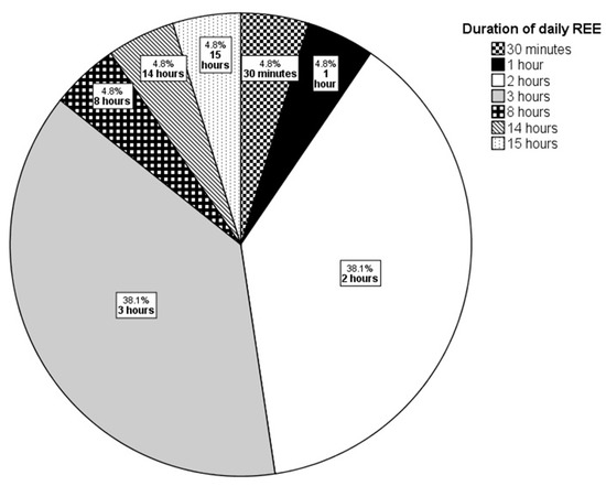 Pie chart depicts commonly employed daily REE duration in rodent studies.