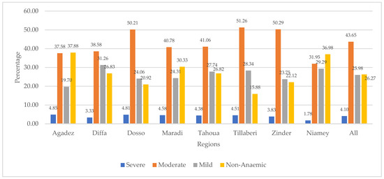 The findings also revealed a high incidence of anaemia among Nigerien under-5 children. With only 26.27% of the children being non-anaemic and 4.10% severe cases detected, anaemia among under-5 Nigerien children is a problem of serious public health concern. It should be noted that global under-5 anaemia prevalence has been estimated at 16.42% [56], while that for SSA is 59.9% [32]. Seifu and Tesema [30] also estimated that 76.60% of 6–23-month-old children in SSA were anaemic. In some nationally representative studies, anaemia prevalence rates were 49.40% in Sudan [25], 61.30% in South Africa [57], 47.5% in Sudan [58], 65.9% in Ghana [59], 51.8% in 6–36-month-old Swaziland children [60], 71.93% in 6–23-month-old Ethiopian children [61], 70.9% in Togo [62], 53.22% in Uganda [63], and 58.6% in Tanzania [64]. Other studies that were not nationally representative found under-5 anaemia prevalence rates at 11.10% in Nigeria [65], 3.9% in the United States of America [66], and 51.3% in rural central and western China [67].