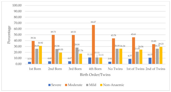 Distribution of children’s anaemia levels across birth order and twins in Niger.