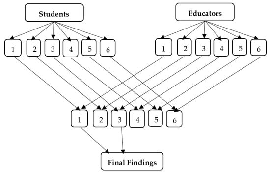 Data triangulation, a method that uses multiple data sources to cover various aspects, such as time, location, and individuals, is a powerful tool in research. By corroborating the findings, it helps to verify them, thereby offsetting any deficiencies in the data and enhancing the reliability of the research. By utilizing the advantages of supplementary data, the accuracy and reliability of the outcomes can be improved. The approach has been extensively used in several sectors to improve the accuracy of results and reduce the possibility of incorrect interpretations [91]. The data triangulation involved cross-referencing the students’ responses for section C with the educators’ preferences for the sort of education. Theory triangulation, on the other hand, entails the application of multiple theories or hypotheses to examine a particular situation or occurrence. This involves analyzing an issue or occurrence from numerous perspectives, employing various methodologies. Employing diverse lenses, each with a specific focus, to scrutinize separate facets or viewpoints. Several theories or hypotheses do not have to be the same or compatible; the more they differ, the more likely they are to address separate issues and/or concerns [91]. The empirical findings in this study used triangulation to demonstrate the internal validity of the ideas of BHM.