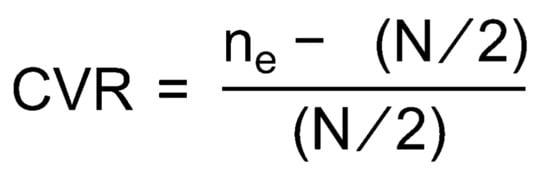 Content validity ratio (CVR) formula.
