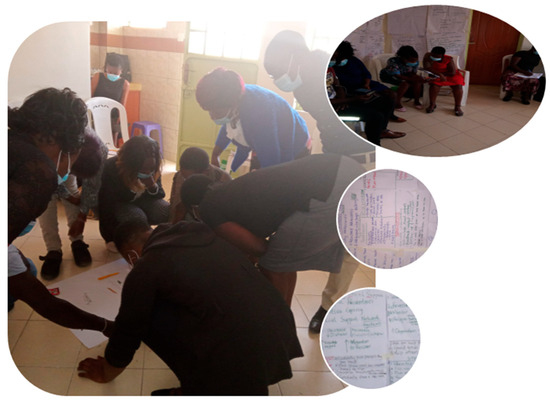 The training took up a hybrid mode due to the COVID-19 restrictions at both sites and took a total of 15 full days in early 2021 from January to February. The Public and Mental Health teams carried out a concurrent type of training. This means that the Reproductive Health, Life Skills, Financial Education, Gender, and Gender Norms curricula were provided at one site, and the other site received the Mental Health PM+ curriculum. This was considered innovative as one site was in the capital of the country, Nairobi, and the other was in a different county, Nakuru. The youth mentors were able to meet the study teams and understand the objective of the study [see Figure 8 on training meeting photos and program notes]. They attended full-day sessions that were interactive and full of role-plays to practice content delivery. Table 2 describes a brief overview of the division of the training phase.
