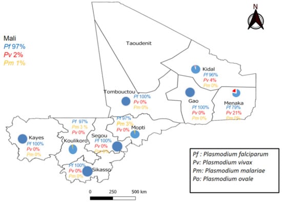 Children under 5 and pregnant women are the most affected [3]. The main species encountered were Plasmodium falciparum (over 85%), Plasmodium malariae (10–15%) and Plasmodium ovale (1%) [4]. P. falciparum causes severe and complicated forms of malaria and has a high fatality rate [4]. Notably, cases of Plasmodium vivax have been documented in Mali [5,6].