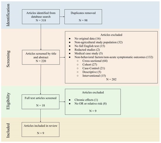 The review was not limited by publication year, in order to capture the entire history of chemical pesticide use in agricultural settings. This includes the rise of pesticide use as early as the early 20th century. Observational epidemiological studies were evaluated to identify associations between workers’ PPE practice and APP. The type of observational study including cross-sectional, cohort, and case–control studies was not limited. The population of interest was agricultural workers.