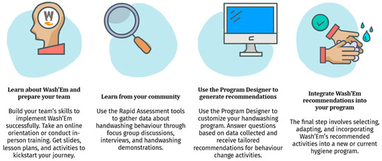 The following supporting information can be downloaded at: https://www.mdpi.com/article/10.3390/ijerph21030260/s1, Document S1: Rapid Assessment Tool guide: Handwashing Demonstrations, Document S2: Rapid Assessment Tool guide: Motives, Document S3: Rapid Assessment Tool guide: Disease Perception, Document S4: Rapid Assessment Tool guide: Personal Histories, Document S5: Rapid Assessment Tool guide: Touchpoints, Document S6: In-depth Interview guide for implementing staff, Document S7. Focus Group Discussion Guide.pdf Document S8: Results of the Wash’Em Process—Activities recommended.