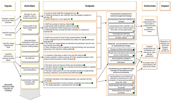The Wash’Em process has been improved based on some of these observed deviations from the intended process. For example, it is now a requirement that users complete at least four Rapid Assessments in order to generate sufficient data for contextualisation of activities. A stark finding of this evaluation was that the protracted nature of the water and food security crisis in Zimbabwe was not viewed as a ‘crisis’ by frontline staff, nor did they view chronic diarrhoea challenges in the region as being a critical disease risk necessitating the prioritisation of handwashing behaviour change initiatives. Other research has identified that handwashing is often not ‘problematised’ by populations during crises, nor is it prioritised by humanitarians for a variety of reasons [14,61]. However, these variations in understanding have caused the global-level Wash’Em trainers to rethink the way fragility, crises, and outbreaks are described and has prompted the team to reflect on how Wash’Em can be used to support resilience building and crisis mitigation programming. Issues related to budgeting for Wash’Em were already a concern for the Wash’Em team and, subsequently, guidance is now available on how to effectively write Wash’Em into a proposal and develop and adequate budget [62]. Finally, the results of this process evaluation highlighted that the stage where users assess the recommended activities, select which to implement, and develop programme plans, is key. The Wash’Em developers have subsequently placed stronger emphasis on this stage of the process and have developed a programme planning tool to guide implementing actors through questions related to delivery modality, sustainability, cross-sectoral programming, logistics, and procurement.