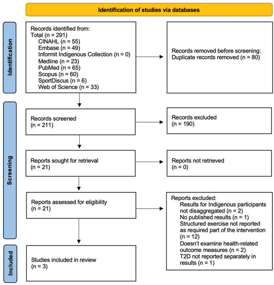 Hurst, L.; Kirwan, M.; Christie, V.; Cross, C.; Baylis, S.; White, L.; Gwynne, K. The Effect of Community-Based Exercise on Health Outcomes for Indigenous Peoples with Type 2 Diabetes: A Systematic Review. Int. J. Environ. Res. Public Health 2024, 21, 290. https://doi.org/10.3390/ijerph21030290