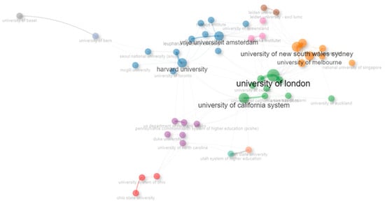 The analysis of international research collaborations highlights significant partnerships across the globe. Germany and the Netherlands lead with 14 collaborations, evidencing strong European research ties. Equally notable are the connections between Australia and the United Kingdom, and between the USA and both Canada and the United Kingdom, each registering 13 collaborations. The USA’s collaboration with China (12 instances) underscores its global research connectivity. Additional key partnerships include the USA’s collaborations with Australia, the Netherlands, and Norway, and the regional Nordic cooperation between Sweden and Finland, each showcasing the USA’s central role and the importance of regional and transatlantic partnerships in fostering a globally interconnected research community. Figure 5 shows a collaboration map of the affiliations of the correspondent authors. Harvard University was the only USA-based institution with collaborations with both European and Asian universities. The collaboration map demonstrates that many collaborations were defined by the geographical proximity of institutions, such as collaborations between European institutions or between Australian institutions.
