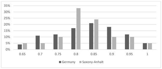 Specifically, in the state of Saxony-Anhalt, 21 dentists were calibrated following a similar distribution compared to the national level (Figure 1). Due to routine yearly examinations of, in general, the same examiners (dentist in public health service) in Saxony-Anhalt, a similar correlation of examination quality can be assumed for the caries data for the time period 2008–2018 (Table 1).