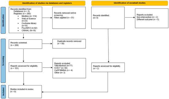 A total of nine articles were eventually included in the review, of which three were conducted in the UK, two in the US and one in Australia, Iran, Colombia and Asia. Among them, five were analytical experimental (three randomised clinical trials and two quasi-experimental studies), two of them were of mixed methodology, and two were qualitative.