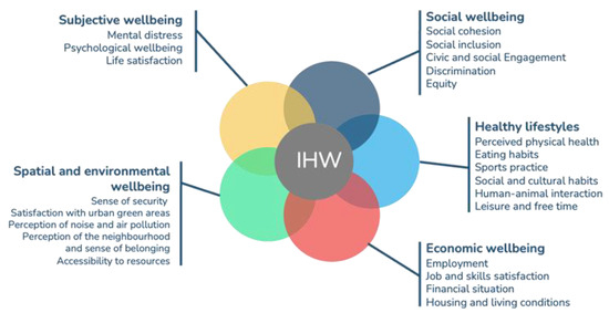 In the context of inclusive health and wellbeing, these frameworks need to encompass a broad spectrum of factors, including social, economic, environmental, and cultural factors, that contribute to the overall health outcomes of urban dwellers [21]. By establishing clear parameters and measurable indicators, policymakers and stakeholders can effectively monitor the progress of interventions and assess their impact on different segments of the urban population. The standardised use of indicators enables comparative analyses across different cities, fostering knowledge sharing and best-practice dissemination to promote effective urban health policies globally [22]. Different indexes and indicators have been created and periodically calculated by relevant organisations and institutions: the WHO Indicators [23], the Human Development Index [24], the OECD Better Life Index [25] the World Happiness Index [26] and the Health Inclusivity Index [24]. Despite this change of perspective, it is hard to find a common framework [27], and research is still focused on some dimensions [28]. Furthermore, most of these indexes and indicators are proposed by experts and calculated at the country level, which hides the deep disparities at lower spatial levels.