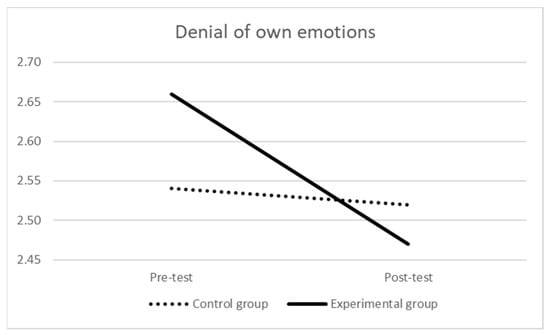 25]). Moreover, we focused on further two constructs related to the functioning in the general life: denial of own emotions and authenticity. Specifically, we hypothesized that the nature of the experiential activities proposed puts participants in contact with the entire range of emotions—from pleasant to unpleasant ones—providing skills to accept and manage them, and therefore reducing the rejecting or not accepting one’s own emotional experience (i.e., denial of own emotions [