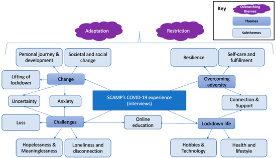 Two themes (restriction and adaptation) were identified as overarching themes because they were especially saliant, present in all interviews, and cut across the remaining themes. Firstly, all aspects of life were restricted in some way. The actions people could take, resources they could access, and the ways in which they could do things were practically limited, which also led to a sense of psychological restriction. This was linked to feelings of isolation, uncertainty, powerlessness, and hopelessness. However, these changes and losses were also discussed in relation to adaptation; people found new and innovative ways of approaching school and work, social connections, hobbies, themselves, and their day-to-day lives. As such, many described finding the second lockdown easier because they had experienced it before, adapted to it, and knew what to expect. Many also drew a new sense of perspective or resilience from these experiences.