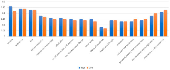 Proportion of data coded under each theme for boys and girls.