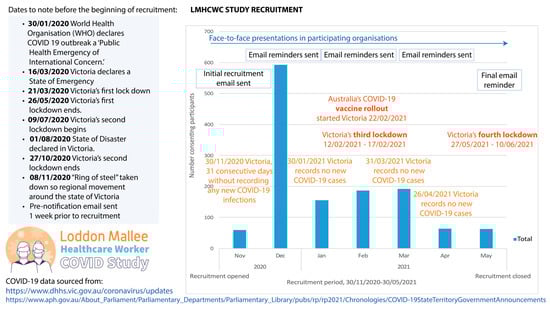 Timeline of recruitment and corresponding external COVID-19-related events for the Loddon Mallee Healthcare Worker COVID-19 Study.