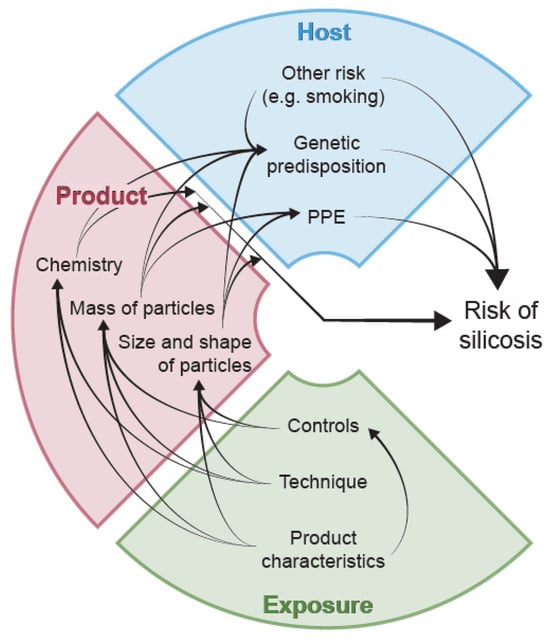 The risk of developing silicosis as a result of inhalation of emissions from the fabrication of engineered stone is a complex result of the interaction between the fabrication process (including the controls in place), the physico-chemical properties of the product and factors related to the individual (host) who is exposed.