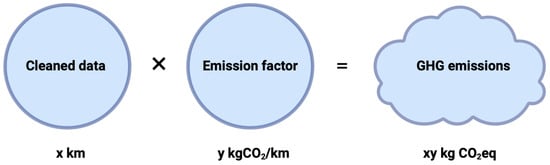 We used pre-calculated emission factors (EFs) (see Table 1), although these are subject to some uncertainty, as they are often based on national or even global averages. However, this method is the most commonly used, as it is often not possible to systematically perform a full life-cycle analysis for each emission point. We used the EcoInvent 3.9 database, which we queried using the OpenLCA 2.0 software [10,11] (Table 1). Depending on the activity, this database provides global data or data specific to Switzerland. We also used the Mobitool 3.0 database [12] (in which the EcoInvent emission factors were largely incorporated), the standard for the environmental assessment of means of transport and mobility in Switzerland.