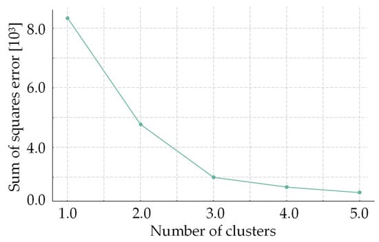 The cluster analysis revealed the existence of three significantly distinct groups (p < 0.05), reflecting different patterns of contact with nature and varied demographic profiles. The graph in Figure 1 illustrates how the sum of squares error (SSE) decreases as we increase the number of clusters. Considering the balance between the number of clusters and the explained variance, three corresponded to the optimal number of clusters, equivalent to the point where the reduction in SSE begins to diminish more slowly.