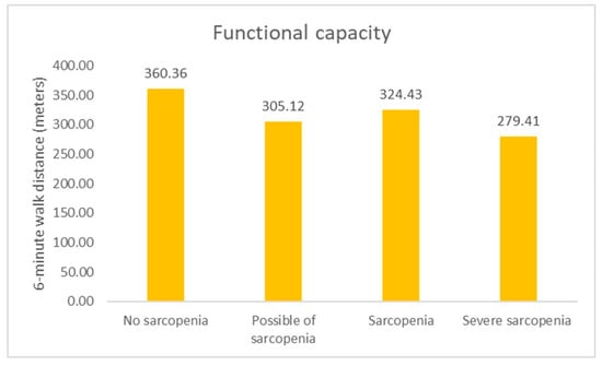 Comparing distances between the sarcopenia and non-sarcopenia groups in the 6-MWT, older adults with sarcopenia exhibited reduced walking for 6 min, indicating that older adults with sarcopenia have a lower functional capacity than those without sarcopenia. Moreover, older Thai adults were found to exhibit a shorter 6-MWD than healthy older individuals in a meta-analysis [23], where the 6-MWD aged 60–69 years was 505–560, and 490–530 m in those aged 70–79 years. In the present study, the 6-MWD was 322–366 m, aged 60–69 years, and 306–322 m aged 70–79 years old, respectively. Decreased leg strength has been observed in individuals who have experienced loss of muscle mass, which may explain why individuals with reduced muscle mass display weakness in their leg muscles. A relationship between muscle strength and sarcopenia has been reported, in which knee extensor and hip abductor muscle strengths reportedly reduced walking distance [24]; however, the study did not assess muscle strength in the quadriceps or lower limb muscles. Therefore, muscle exercises should be explored as potential strategies for sarcopenia.