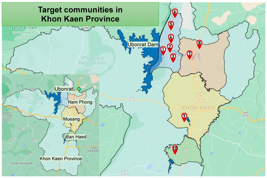 Maneeprakorn, W.; Tumcharern, G.; Bamrungsap, S.; Chansaenpak, K.; Segkhoonthod, K.; Rattanabut, C.; Karn-orachai, K.; Ngamaroonchote, A.; Sangkaew, P.; Wongsuwan, P.; et al. Addressing Water Contamination and Associated Health Issues through Community-Based Interventions: A Case Study in Khon Kaen Province. Int. J. Environ. Res. Public Health 2024, 21, 729. https://doi.org/10.3390/ijerph21060729