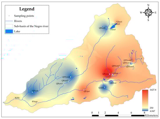Additionally, to spatially visualize the HI results for each metal in the Negro River sub-basin, the Inverse Distance Weighting (IDW) method was employed in ArcGIS 10.8 [47,53,66].