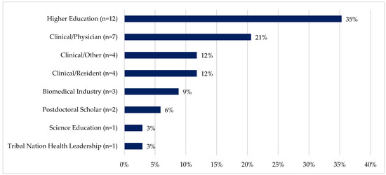 Career outcomes for AIAN trainees who earned a doctoral/professional degree: 2002–2022 (n = 34).