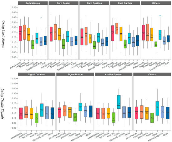 - Hwang, J. A factor analysis for identifying people with disabilities’ mobility issues in built environments. Transportation Res. Part F Traffic Psychol. Behav. 2022, 88, 122–131. [Google Scholar] [CrossRef]