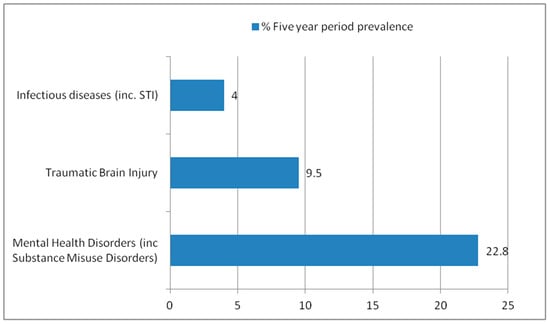 - Oddy, M.; Moir, J.F.; Fortescue, D.; Chadwick, S. The prevalence of traumatic brain injury in the homeless community in a UK city. Brain Inj. 2012, 26, 1058–1064. [Google Scholar] [CrossRef] [PubMed]