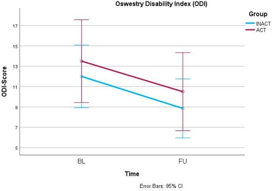 Oswestry Disability Index (ODI) changes from BL to FU.