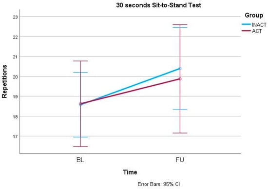 30 seconds Sit-to-Stand Test (30secSTS) changes from BL to FU.