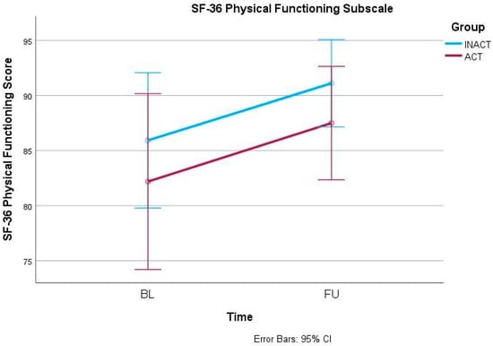 Short Form-36 (SF-36) Physical Functioning Subscale changes from BL to FU.